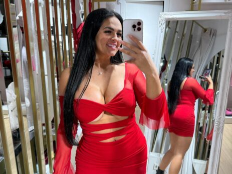 vestido vermelho com o promenor das mangas transparentes  que marca toda a diferenca com a sua eslegancia  e ousadia para...