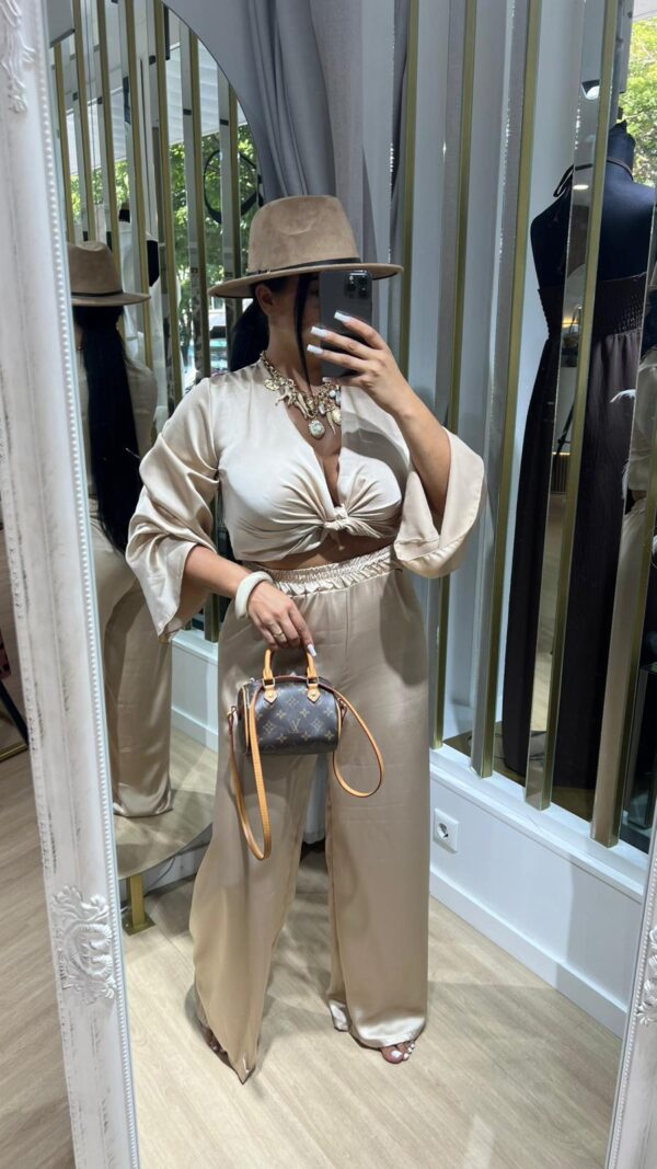 Um conjunto de cetim é uma escolha maravilhosa para quem deseja um visual elegante e sofisticado. O cetim, com seu brilho suave e toque macio, traz um ar de luxo e delicadeza. Você pode encontrar conjuntos que incluem blusas, saias, calças ou shorts, perfeitos para eventos especiais, festas ou até mesmo para um look mais chique no dia a dia, dependendo do estilo.