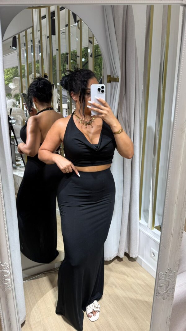 Um conjunto de lycra preta com uma saia comprida e um top é uma combinação super estilosa e versátil. A lycra preta traz um visual mais ajustado e moderno, perfeito para um look casual, esportivo ou até mesmo para uma saída à noite, dependendo do estilo do top e da saia. A saia comprida adiciona um toque de elegância e feminilidade, criando um equilíbrio bonito entre conforto e sofisticação.