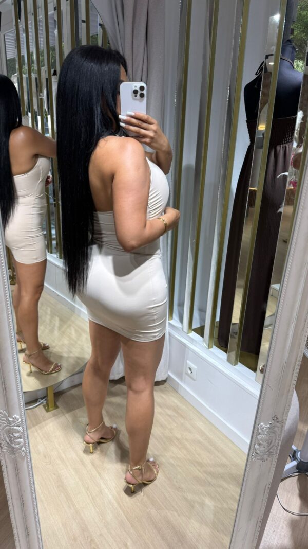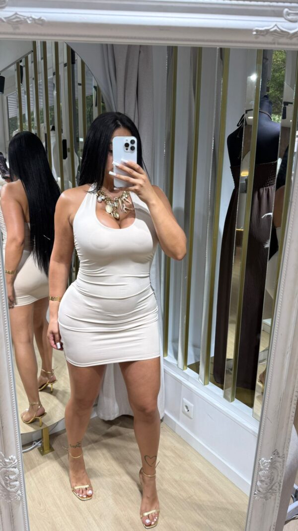 Um vestido de lycra básico bege é uma peça super versátil e elegante, perfeita para várias ocasiões. A cor bege é neutra e fácil de combinar, permitindo que você crie looks mais simples e sofisticados ou até mais elaborados com acessórios e calçados diferentes. Você pode usá-lo com um cinto para marcar a cintura, com uma jaqueta jeans para um visual casual, ou com acessórios dourados ou prateados para um toque mais chic. Além disso, o tecido de lycra garante conforto e um caimento bonito ao corpo.